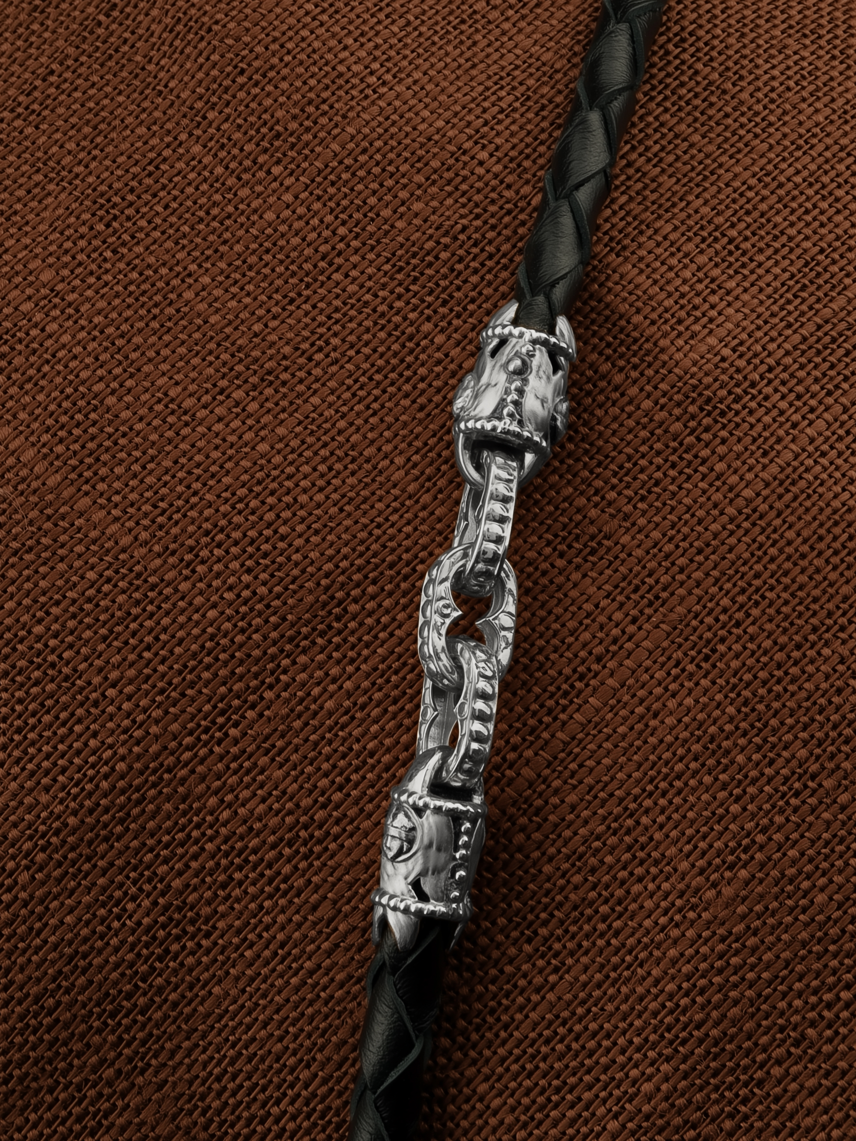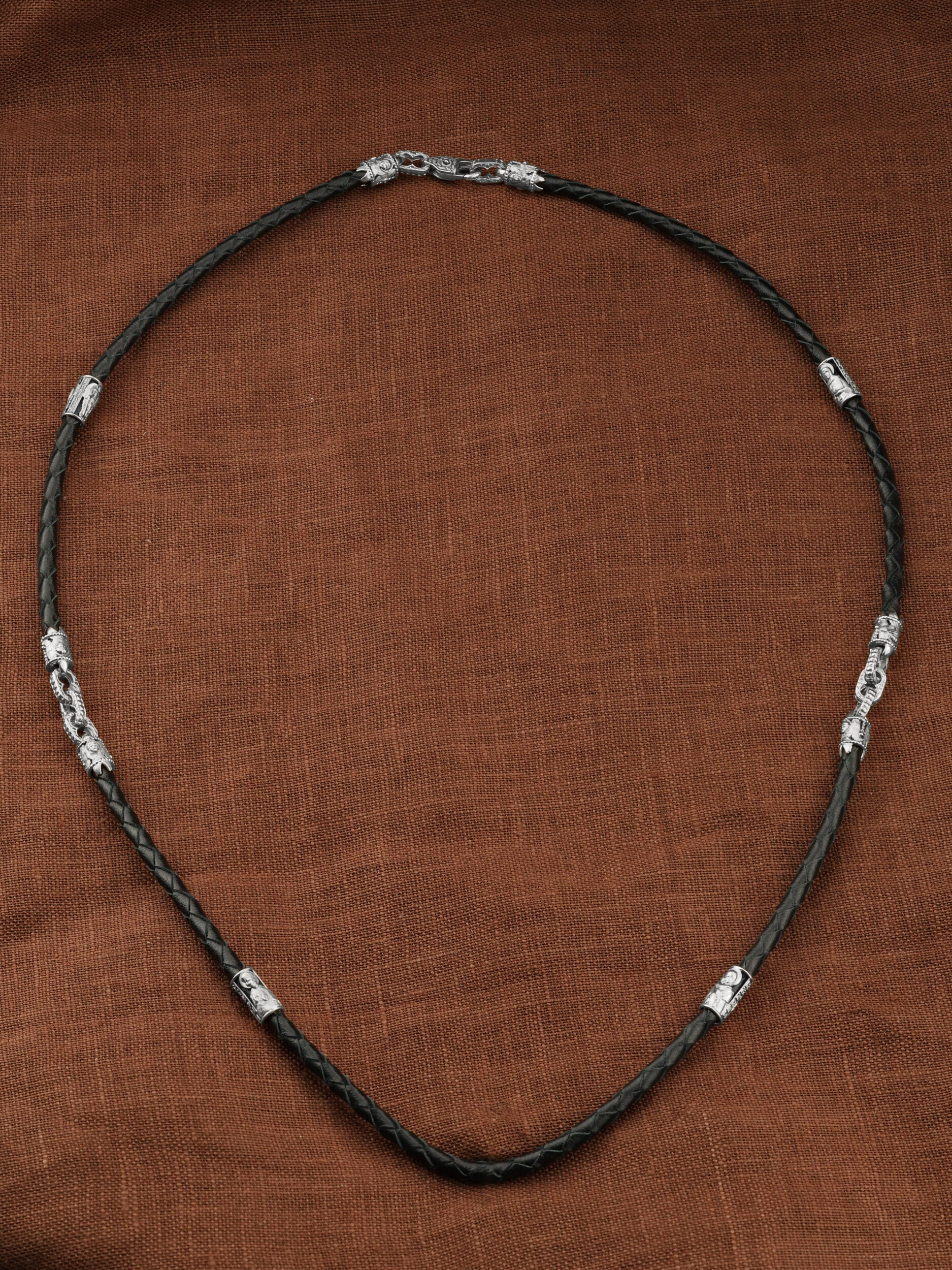 Шнурок кожаный из белого золота c кожаным шнурком